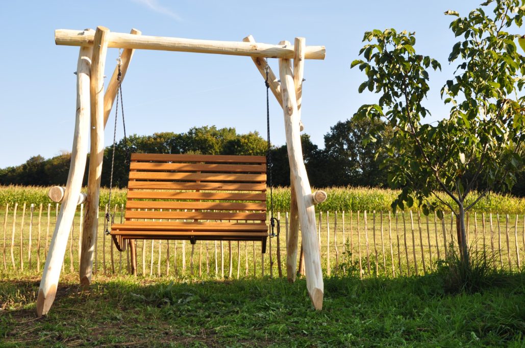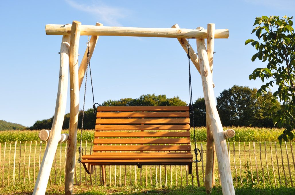 Sanftes Schaukeln - unsere Hollywoodschaukel aus Akazien- und Eichenholz für gemütliche Stunden.