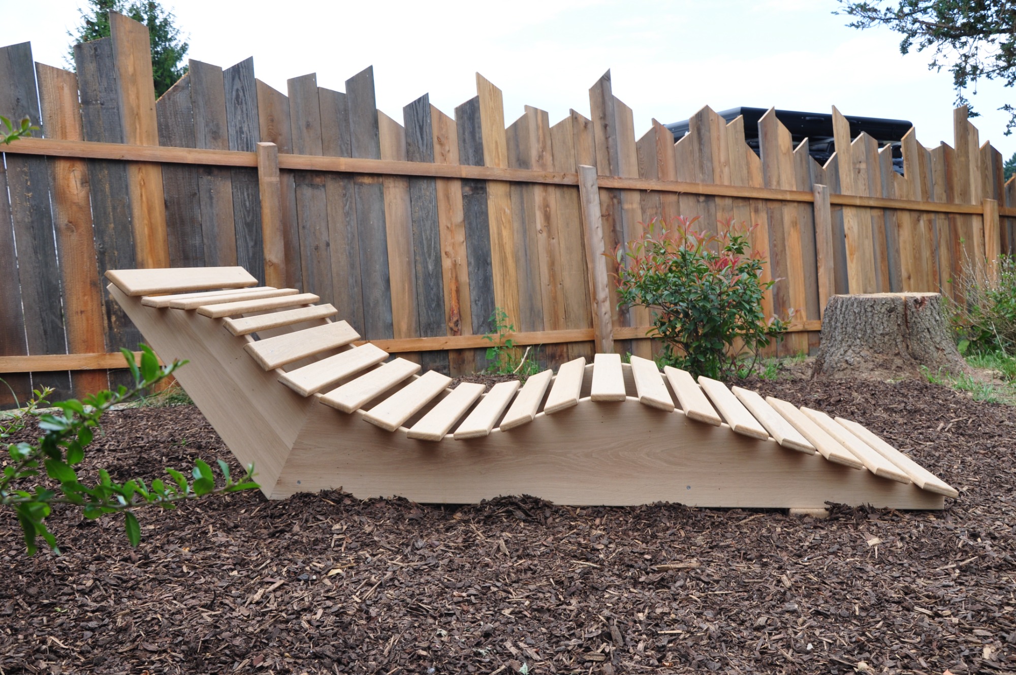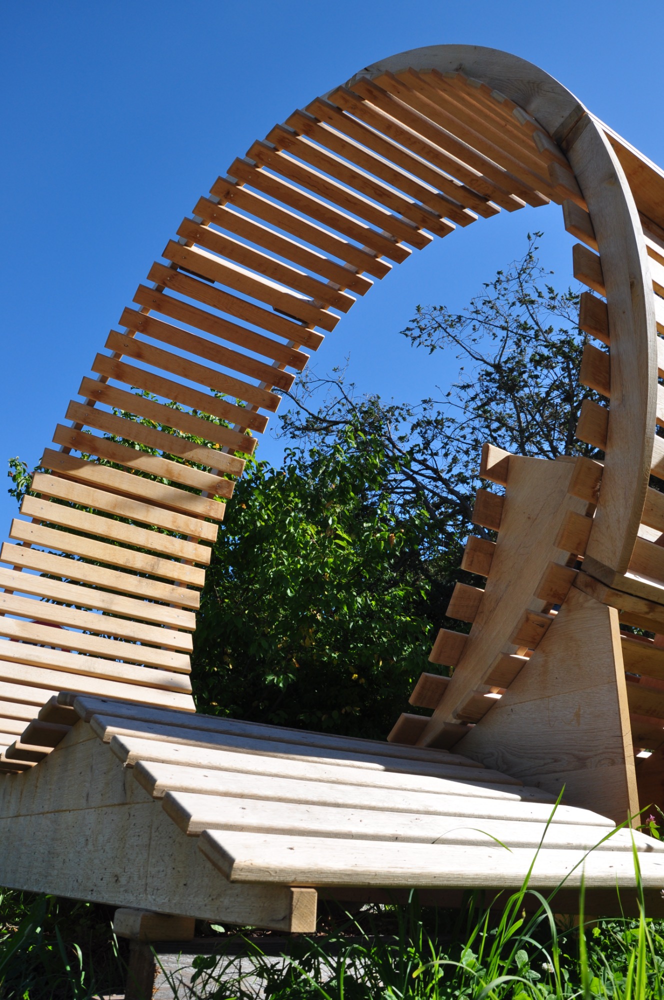 Zeitlos relaxen - geschwungene Wellenliege aus massivem Eichenholz, auf Wunsch farblos endbehandelt.