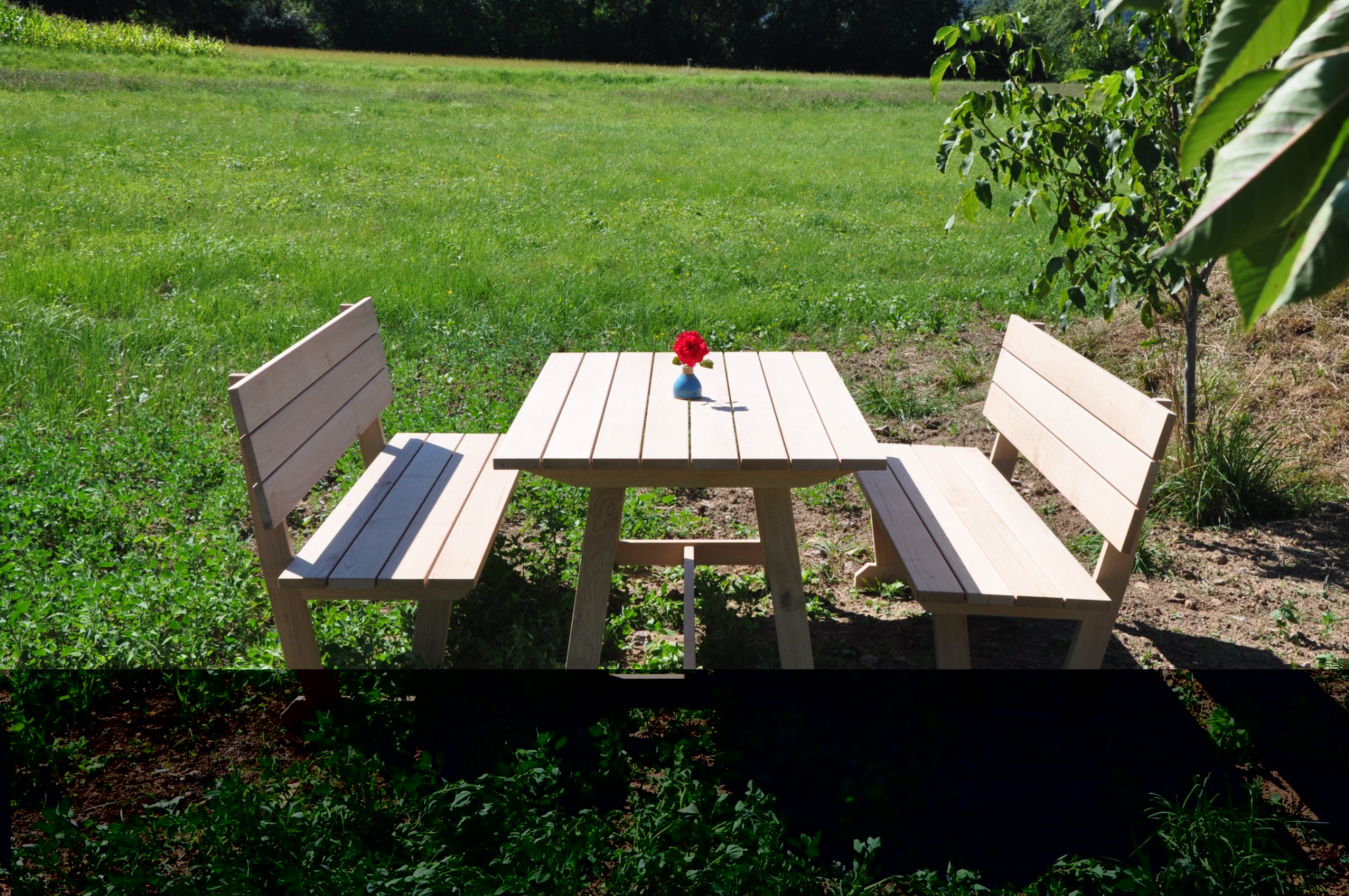 Unsere Sitzgarnitur für den Außenbereich vereint Stabilität, Komfort und natürliches Design. Gefertigt in unserer Schreinerei aus massivem Eichenholz ist sie die ideale Lösung für gesellige Runden im Garten oder auf der Terrasse.